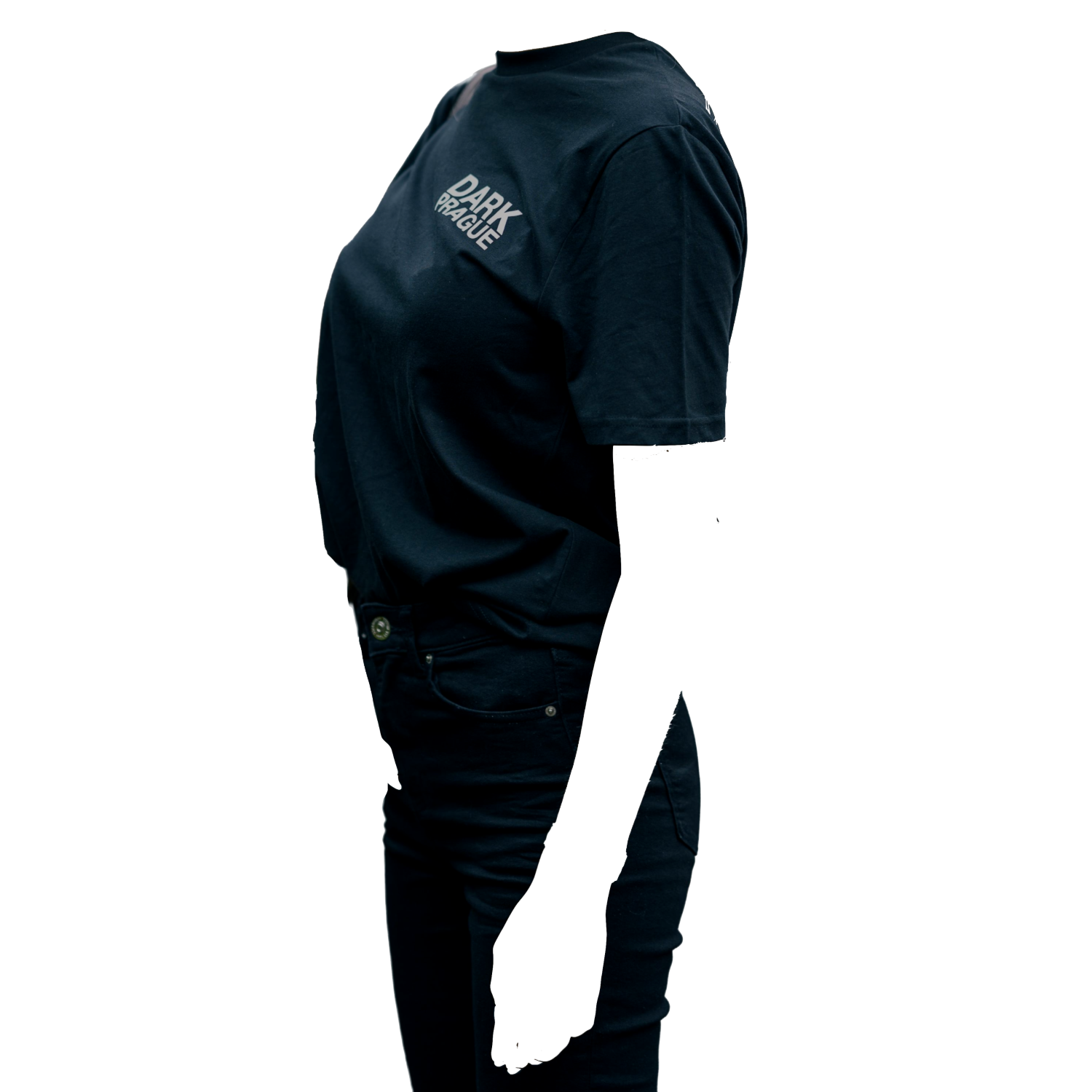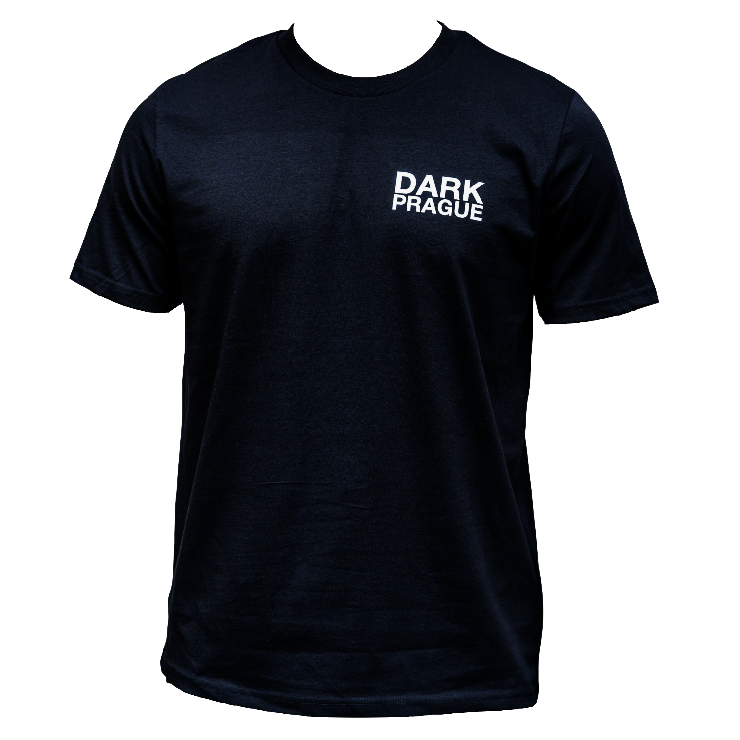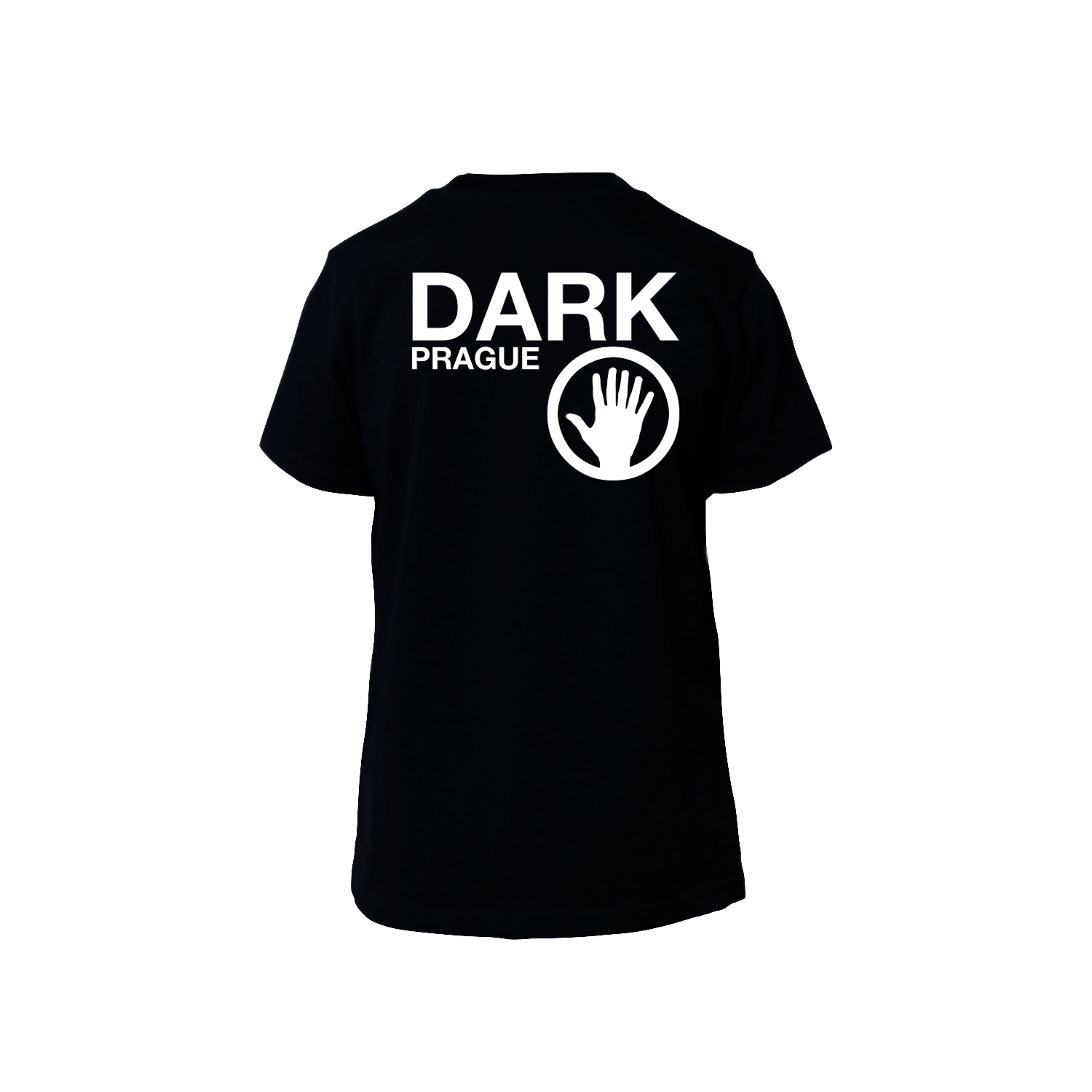 A unisex black T-shirt with white print on both the front and back, created for the zero edition of Dark Prague.